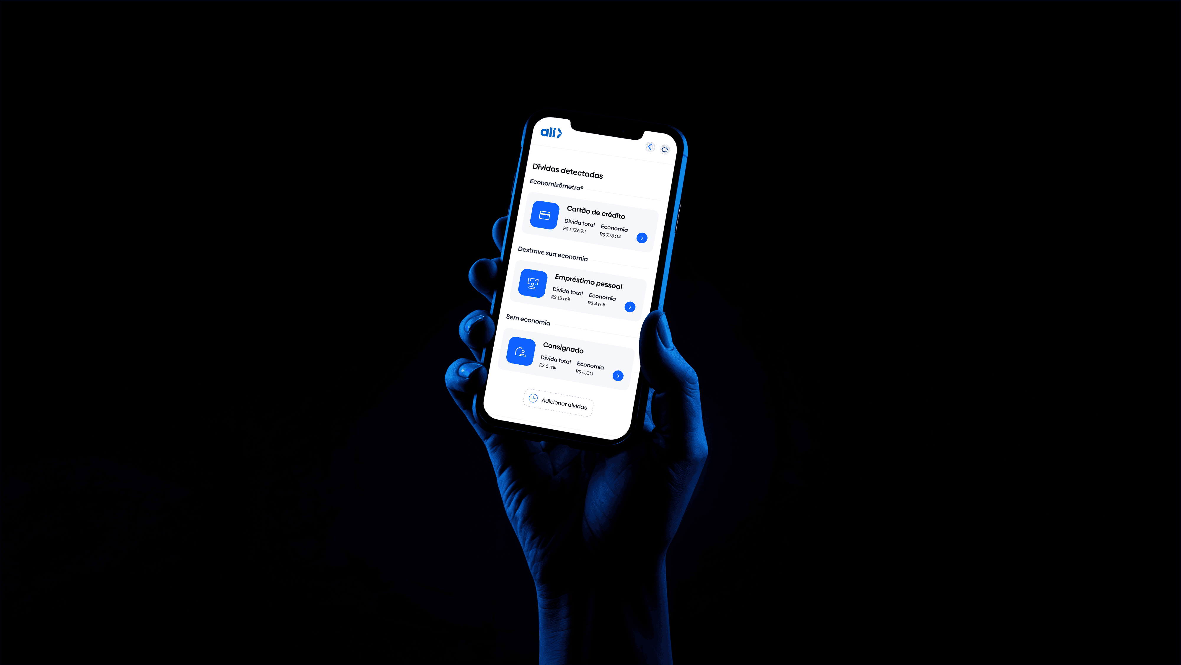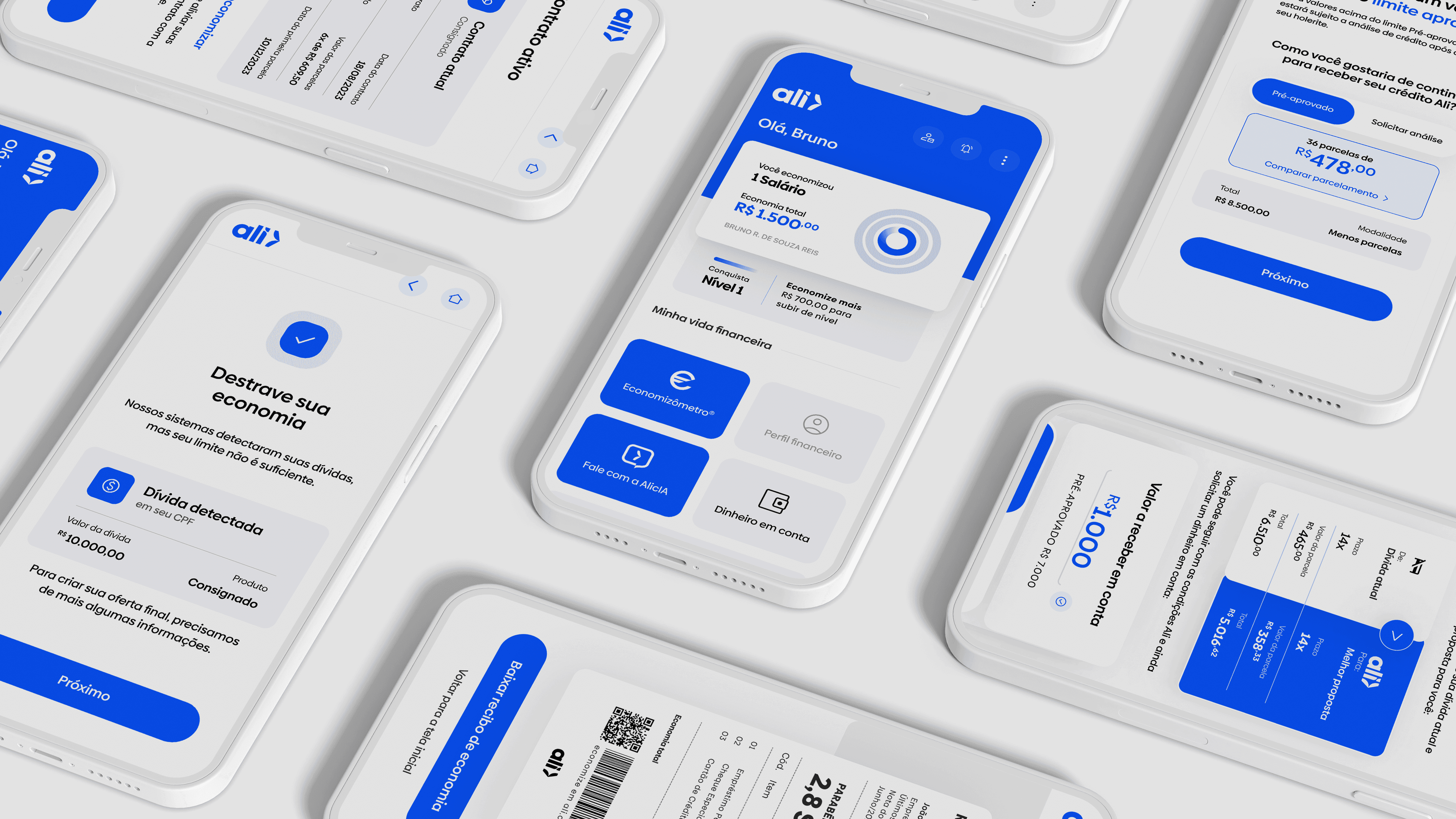 I repositioned Ali with a focus on clarity and relevance. The new brand highlights financial education, a simplified tone of voice, and the “Economizômetro” — a tool that helps users compare and reduce their debts easily. The result is a brand that’s more understandable for clients and more actionable for HR teams.