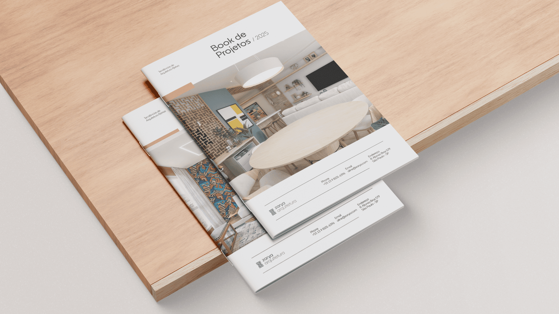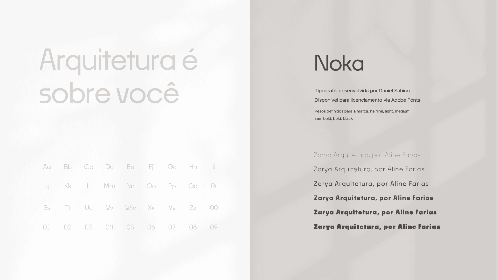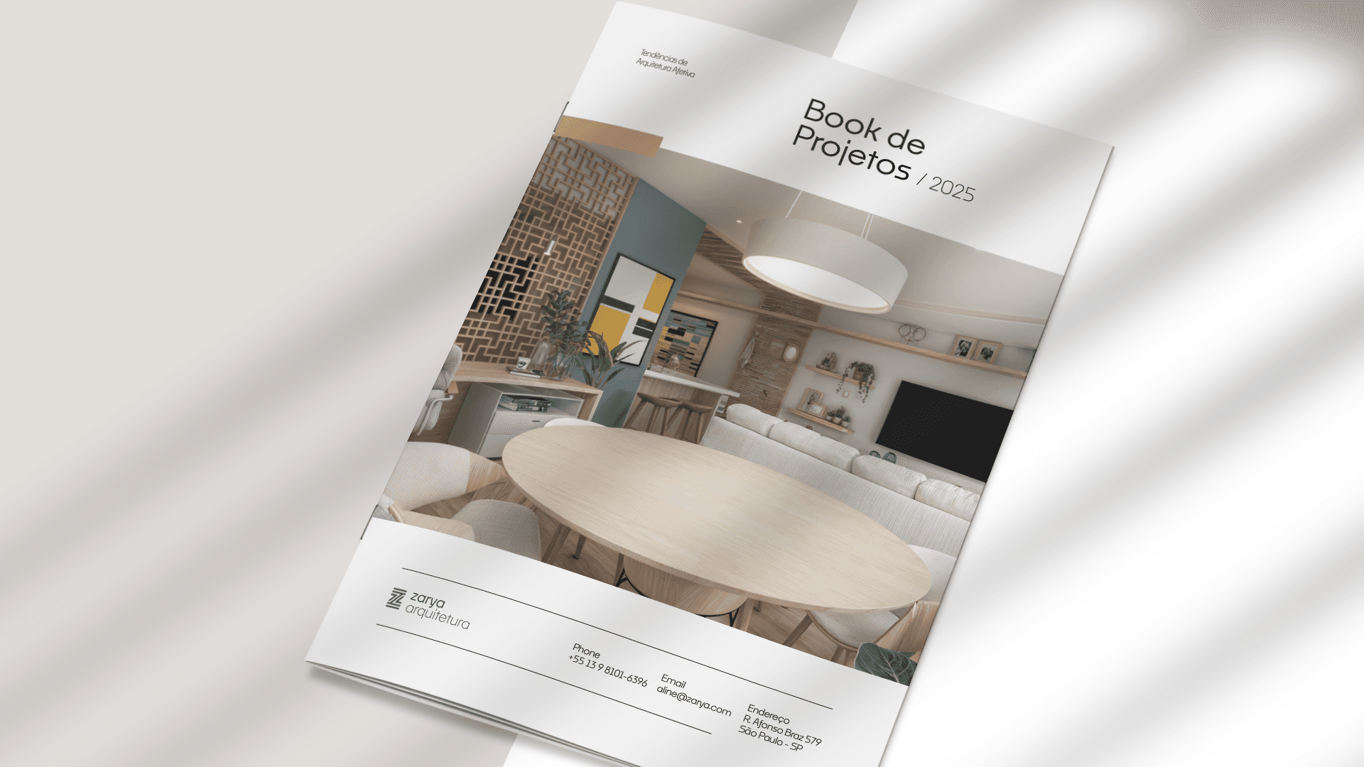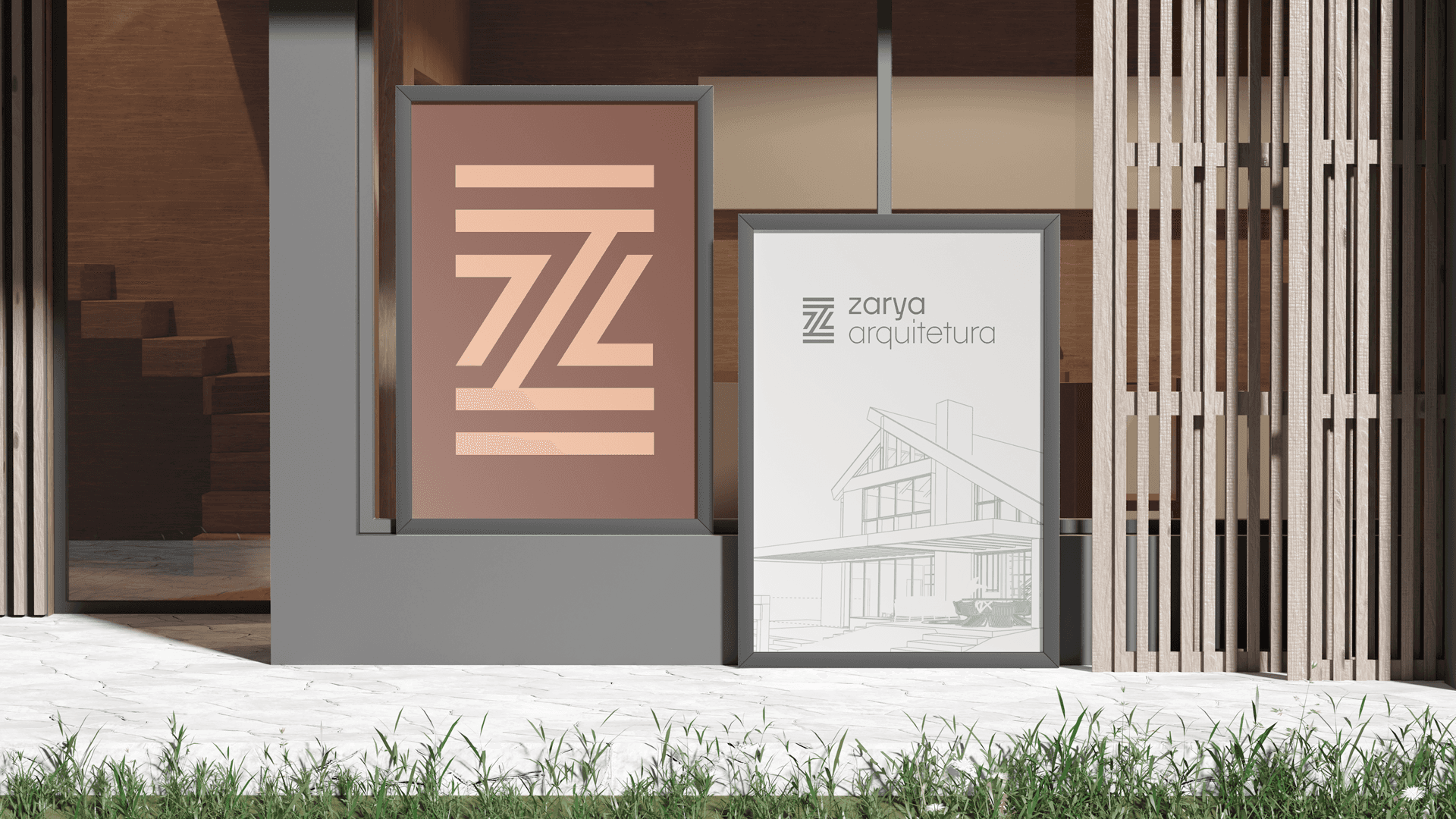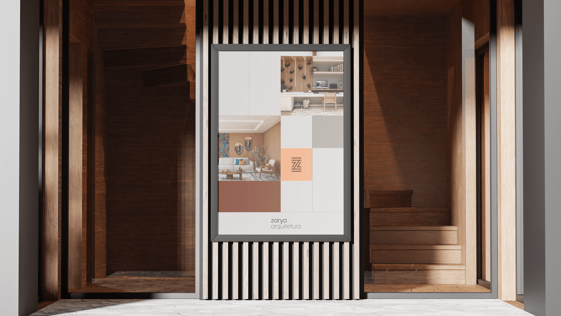 The naming process led to the creation of the brand Zarya — a name that connects cultural roots and modernity. Inspired by the Nigerian city of Zaria, it reflects strength, warmth, and identity — and, paired with a modern design, positions Aline Farias’ brand with authenticity and sophistication in the architecture market.